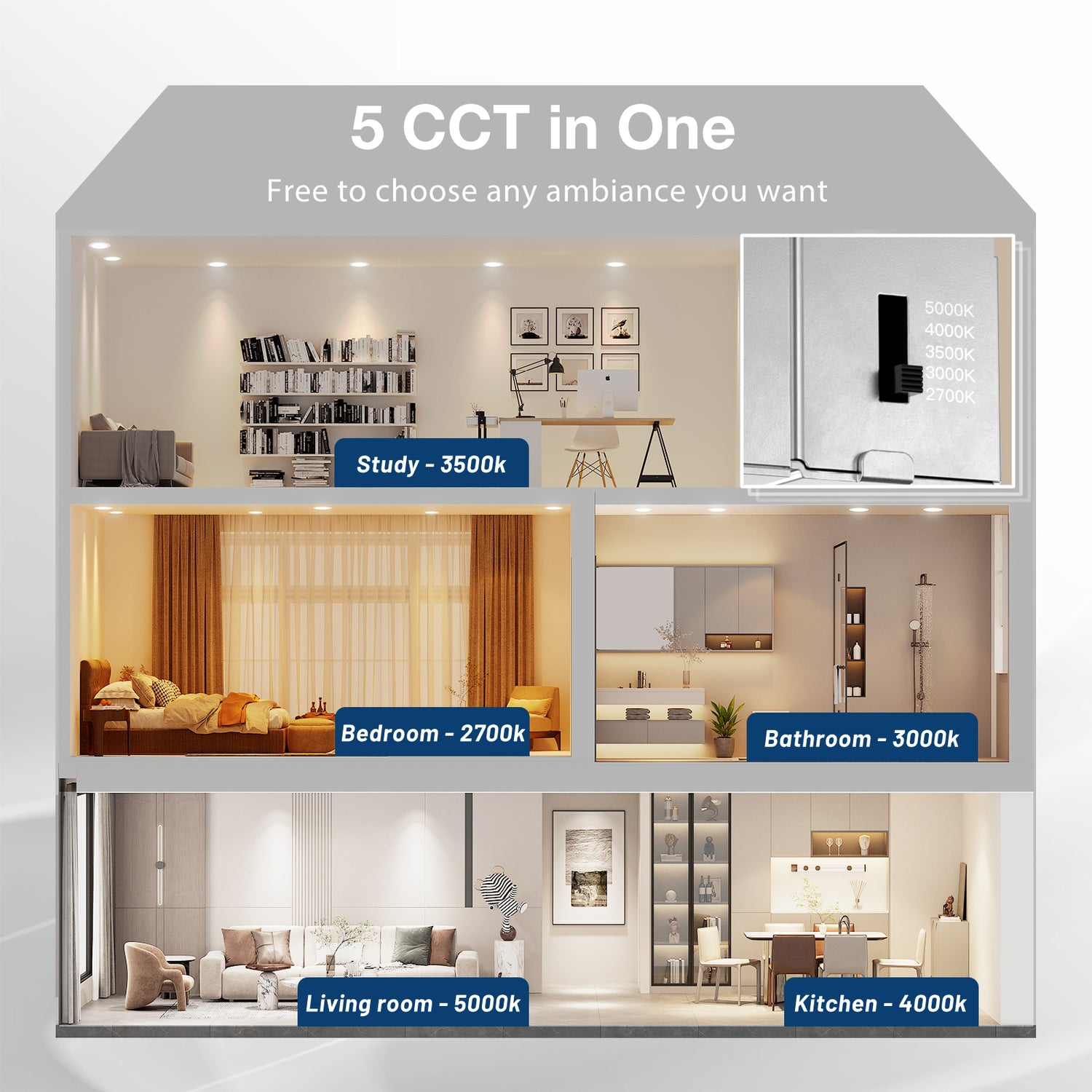 6 Pack 6 Inch 5CCT Ultra-Thin LED Recessed Ceiling Light with Junction Box, Dimmable Canless Wafer Downlight, 12W, 1050LM Brightness, ETL&FCC - 6 is backordered and will ship as soon as it is back in stock.