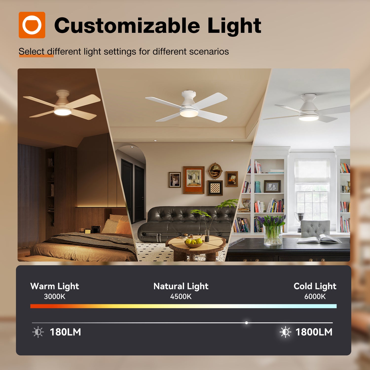Addlon Ceiling Fans with Lights, 42 Inch Low Profile Ceiling Fan with Light And Remote Control, Flush Mount, Reversible, 3CCT Dimmable 4 Blades White/Nickel/Black Small Ceiling Fan for Bedroom Indoor/Outdoor Use - White is backordered and will ship as soon as it is back in stock.