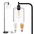 Details: LED Floor Lamp, with Hanging Glass Lamp Shade and 2 Distinctive LED Bulbs for Bedroom and Living Room