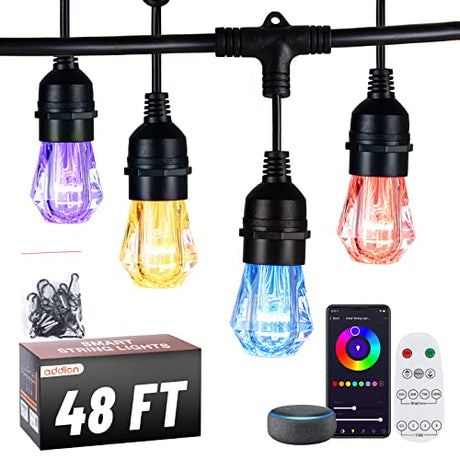 addlon 3CCT Outdoor String Lights with Remote Control, Dimmable and Timable Patio Lights